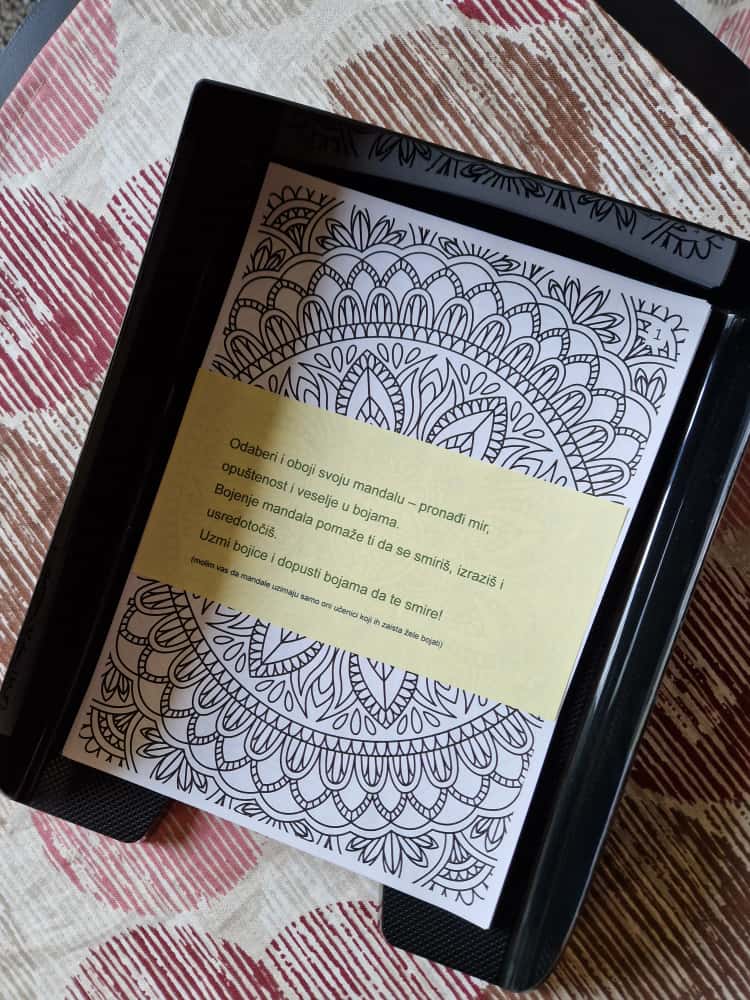 U školskom hodniku postavljen je pano s porukama i sadržajima o mentalnom zdravlju, a u “kutu za odmor” učenike su dočekale isprintane mandale – prilika da se kroz bojanje opuste i odmore misli.