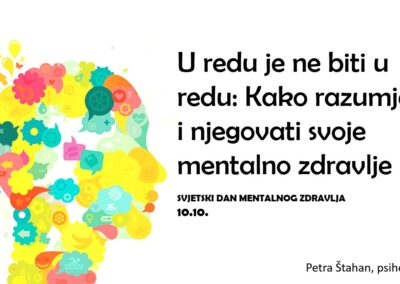 Naša psihologinja održala je učenicima osmih razreda predavanje „U redu je ne biti u redu: Kako razumjeti i njegovati svoje mentalno zdravlje“, dok su pedagoginja i psihologinja u sedmim razredima provele „Kviz mentalnog zdravlja“ kroz koji su učenici mogli na zabavan način testirati i proširiti svoje znanje o ovoj važnoj temi.